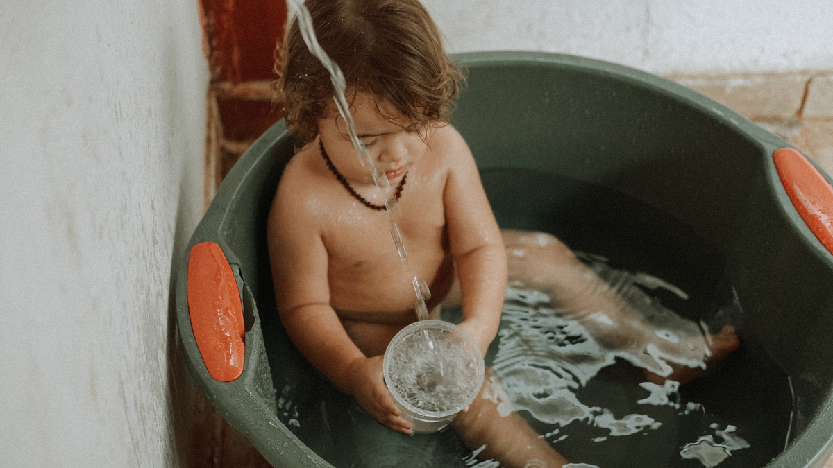Não precisa de muito para o dia ser bom. Um banho de bacia, água gelada e a liberdade de se molhar inteiro. É nessas bagunças que a gente percebe que as melhores coisas da vida não custam nada e não precisam de luxo. É gente como a gente, aproveitando o que tem de melhor: o agora.