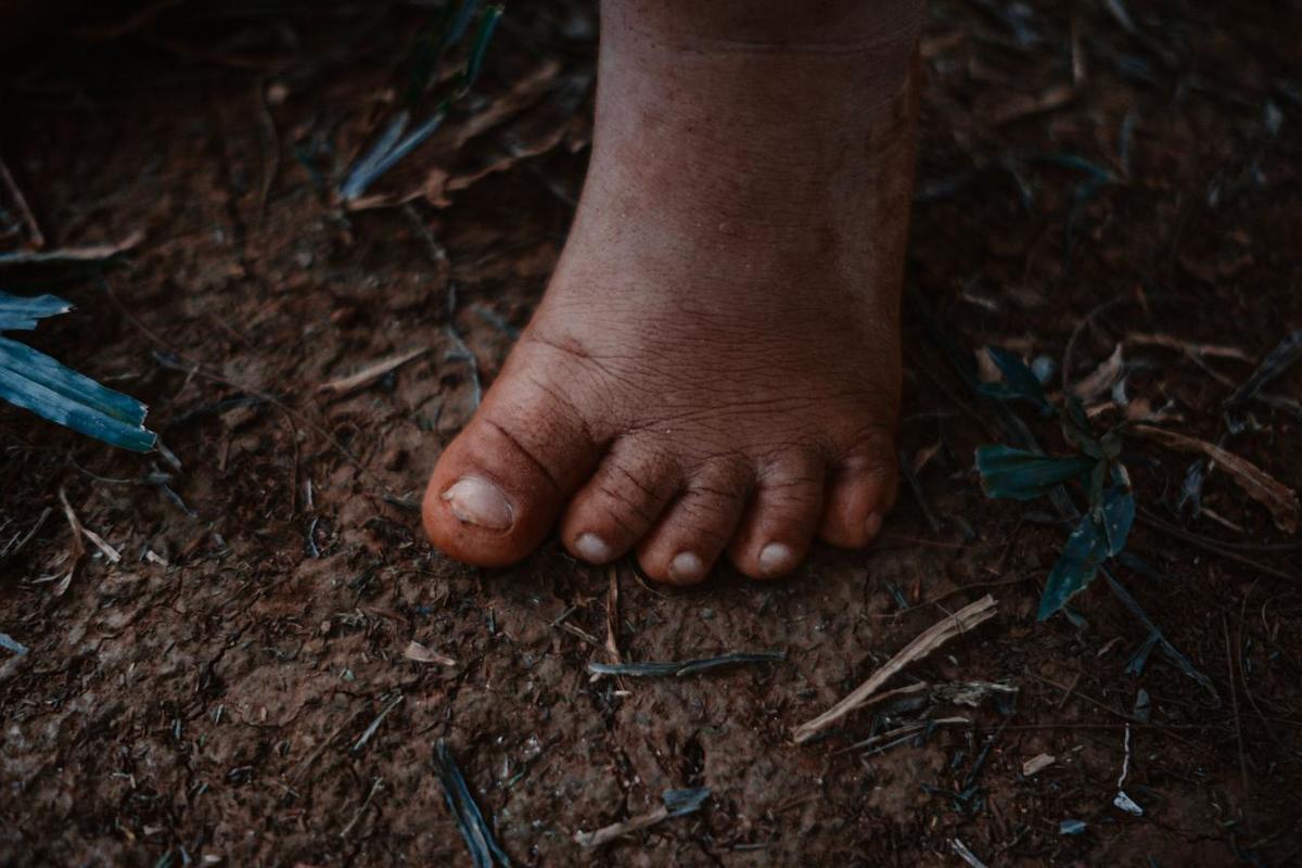 Pé na grama e gente reunida
