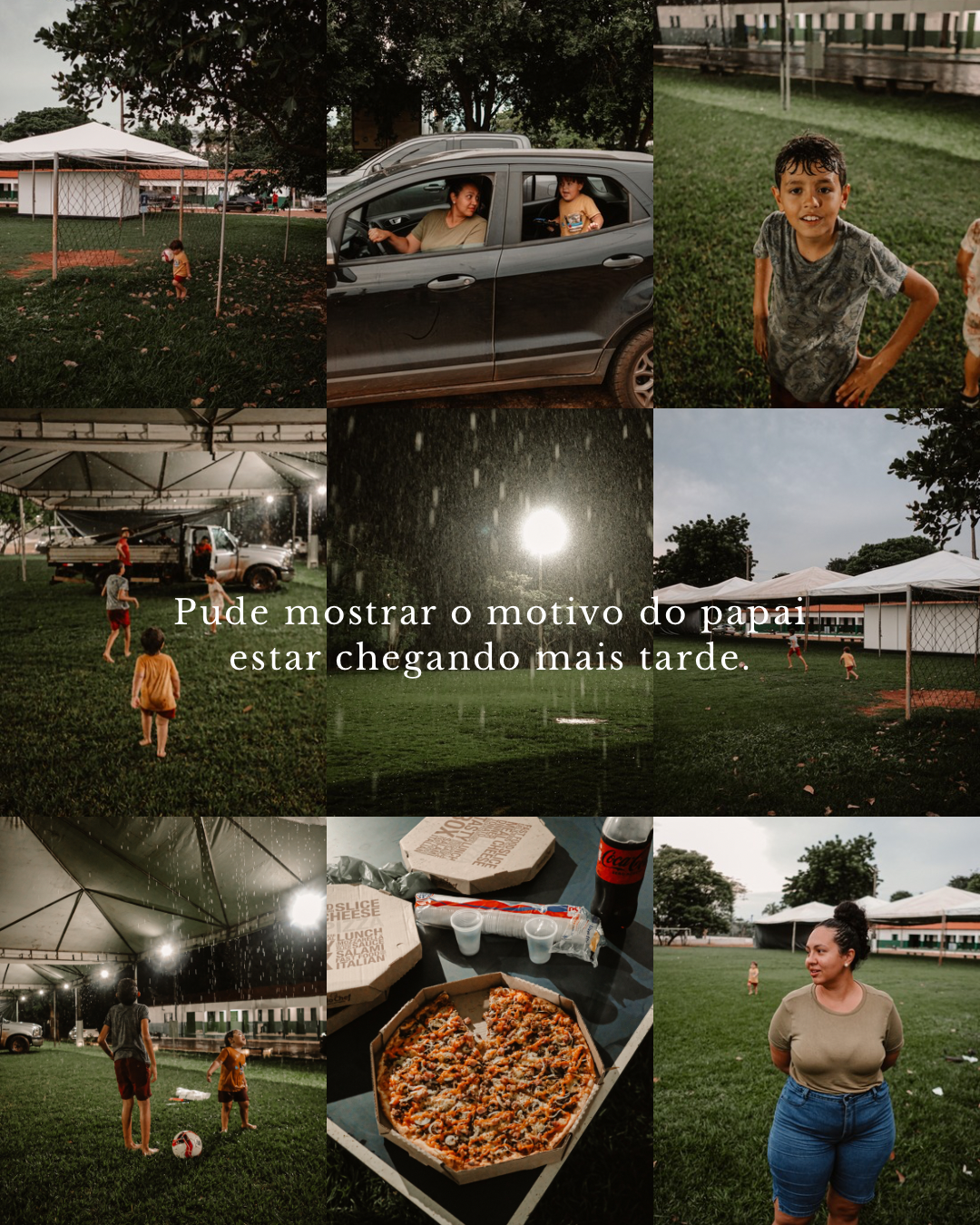 Caiu a chuva e, em vez de corrermos para nos esconder, eles correram para brincar. Terminamos a noite dividindo uma pizza ali mesmo, com pé no chão e coração cheio.