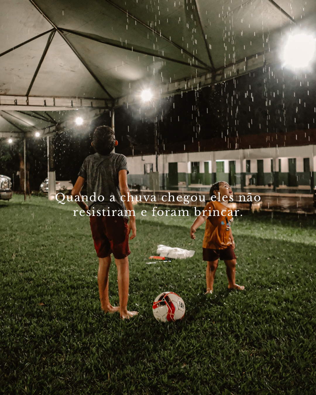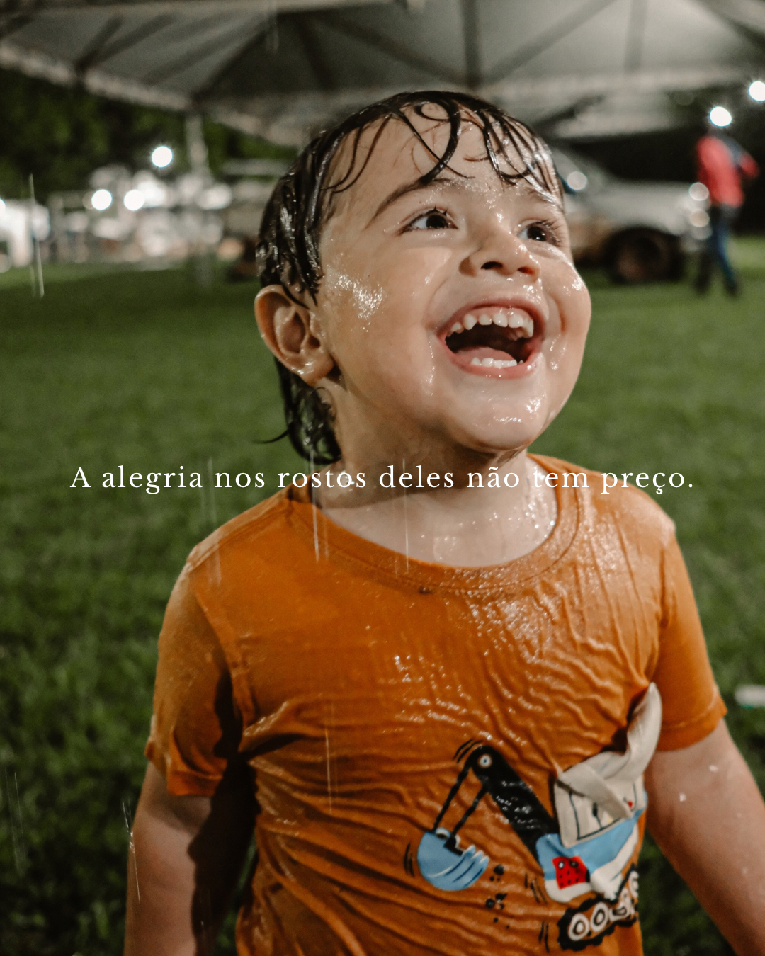Eles não vão lembrar do valor do brinquedo que eu comprei no mês passado, mas garanto que nunca vão esquecer desse banho de chuva com o pai. Trabalho e amor, sempre juntos.